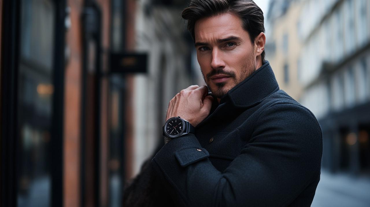 En entornos corporativos, el Montblanc Summit 3 funciona como complemento perfecto de trajes de corte clásico en tonos oscuros. La combinación de un traje azul marino o gris oxford con camisa blanca encuentra en este reloj un aliado que aporta modernidad sin estridencias. La correa de caucho negro, lejos de restar formalidad, introduce una nota contemporánea que señala apertura hacia la innovación sin abandonar los códigos de elegancia tradicionales. Para eventos de etiqueta rigurosa, considerar el cambio a una correa de piel negra puede elevar aún más la percepción formal del conjunto, aunque la versión original mantiene suficiente sobriedad para la mayoría de contextos profesionales. El acabado negro del titanio dialoga especialmente bien con accesorios metálicos oscuros: gemelos, hebillas de cinturón o monturas de gafas en negro mate o acero pavonado crean armonías visuales coherentes.